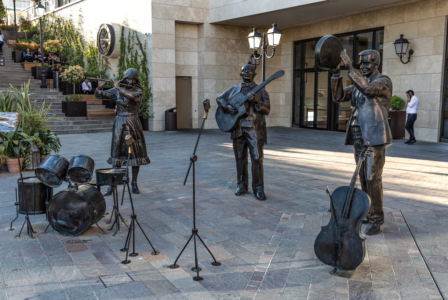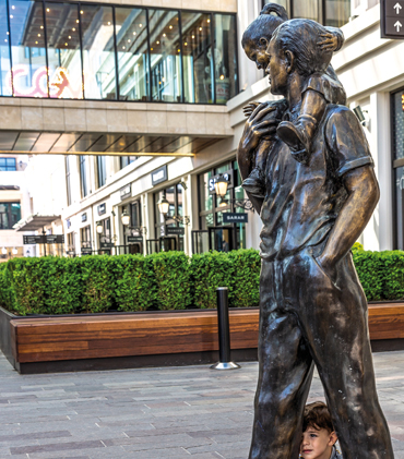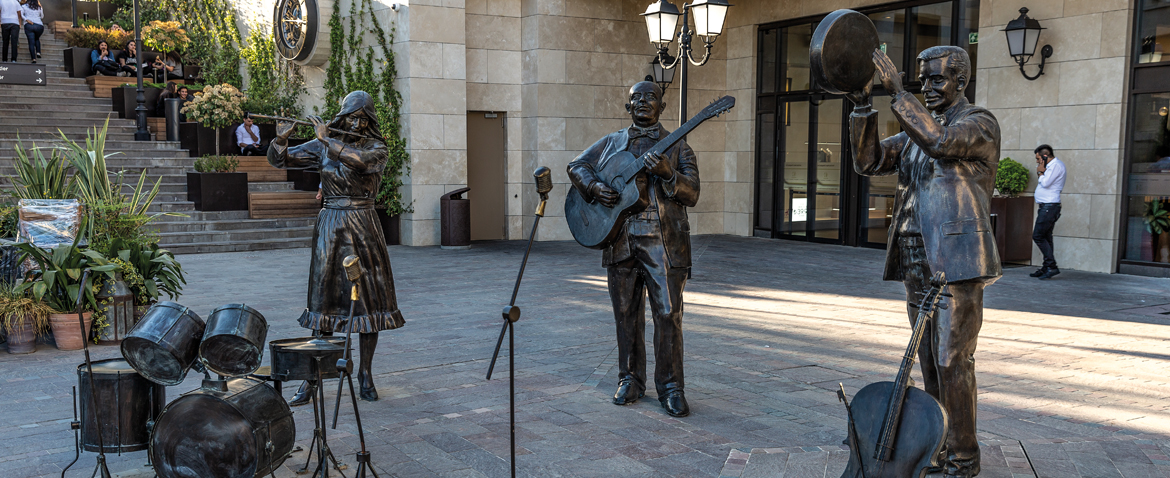 We designed bronze sculptures in the Hilltown Shopping Center, in harmony with the eaves, classical columns and arches.