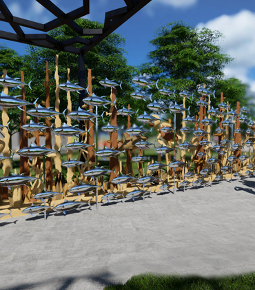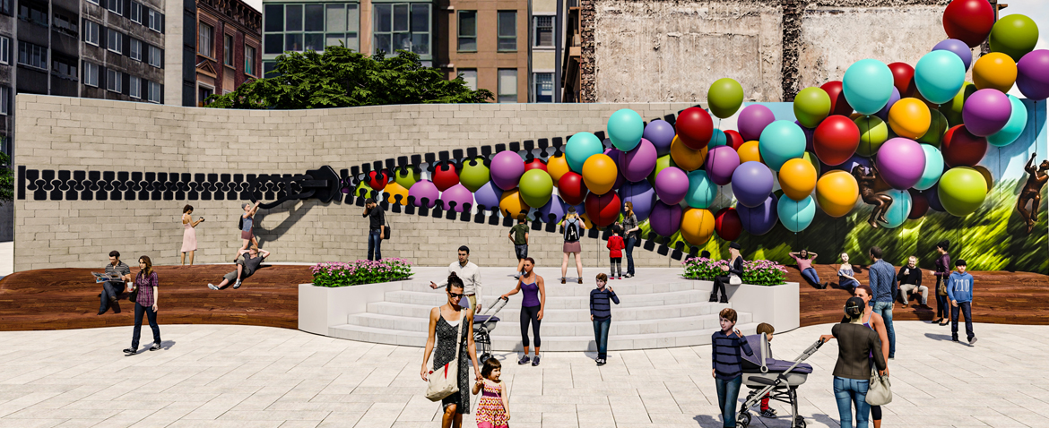 We make city's texture look different with installation works and designs on city squares, walls, roads and buildings.