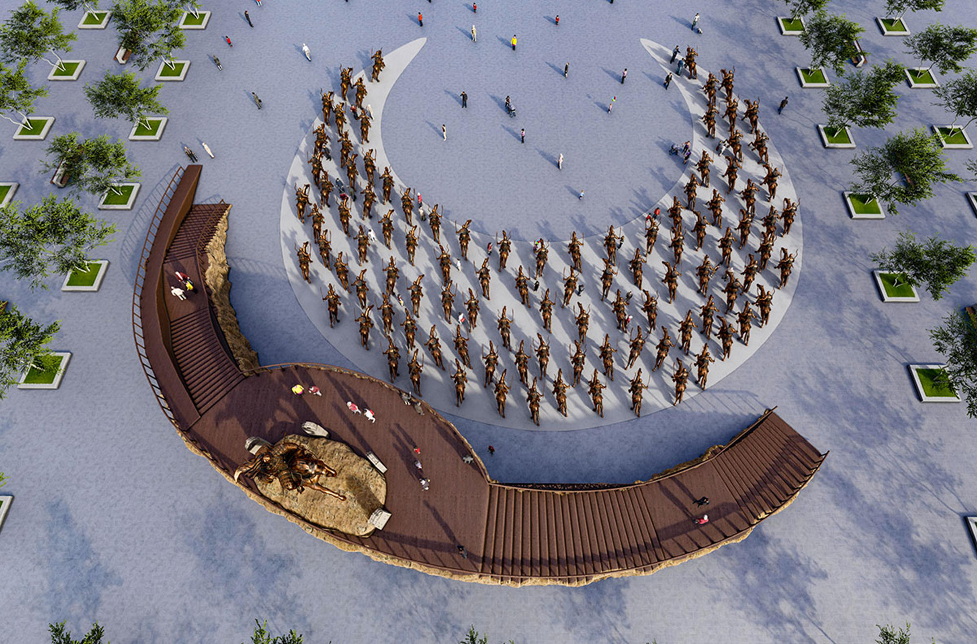 The "Crescent Tactic", which is the most important tactic in winning the Battle of Manzikert, was symbolized with the statue of the Selcuk Sultan Alparslan on horseback.