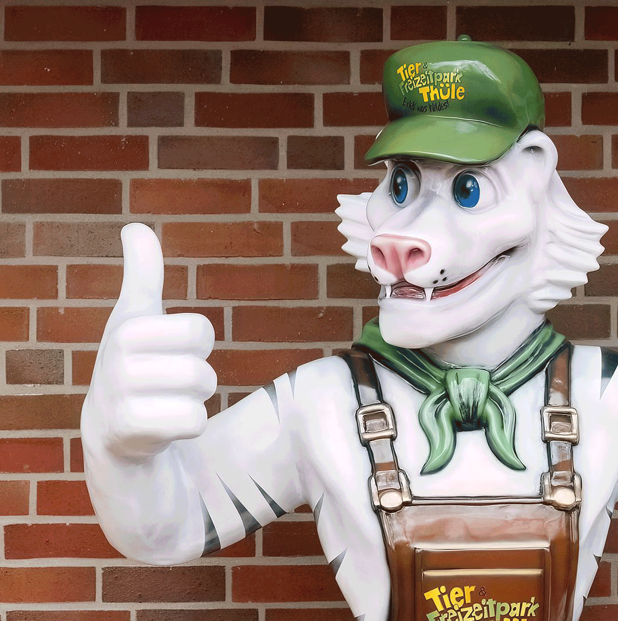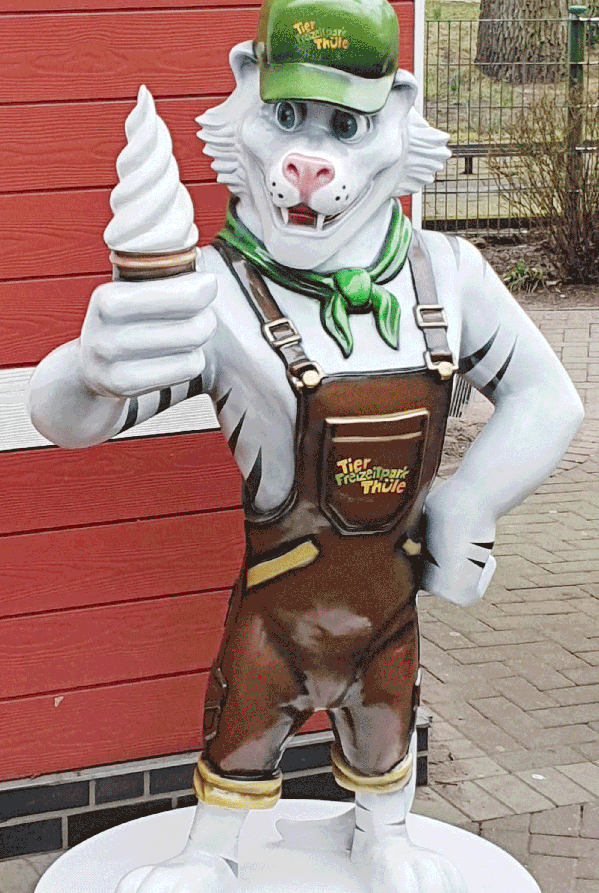 Our design and produced mascot stands at the entrance of the large animal and leisure park to greet visitors and of course you are cordially invited to take a picture with him. But there are more Theo's in the park area.