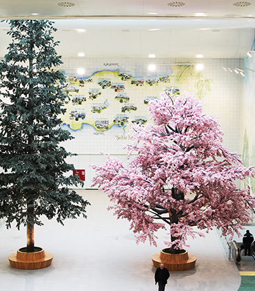Pine and Blossom Tree Metro Station is a design project. The monumental trees in the subway station symbolise life and commitment to healthcare. Various sculptures and artistic installations strategically placed throughout the station enrich the overall experience by drawing attention to healthy living.